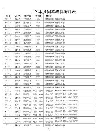 113 年度個案濟助統計表